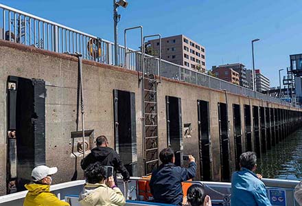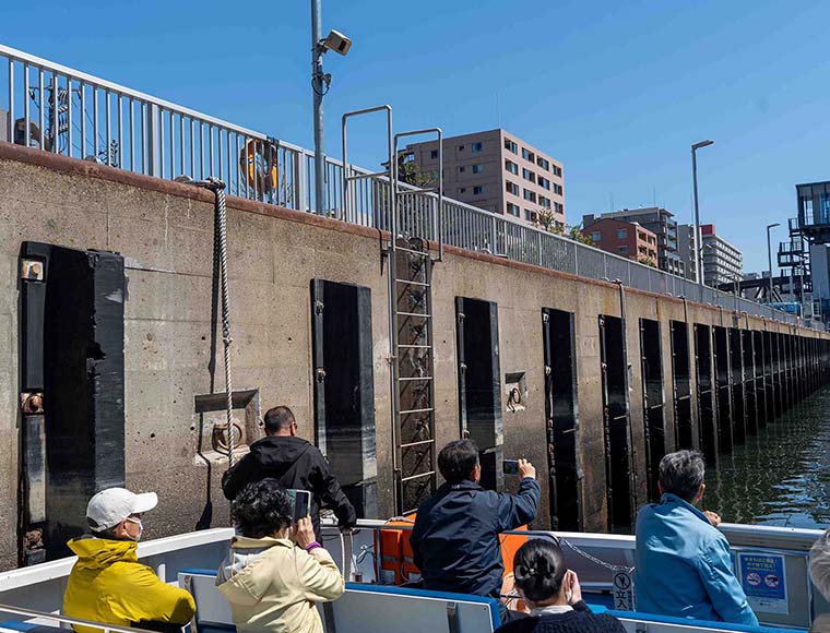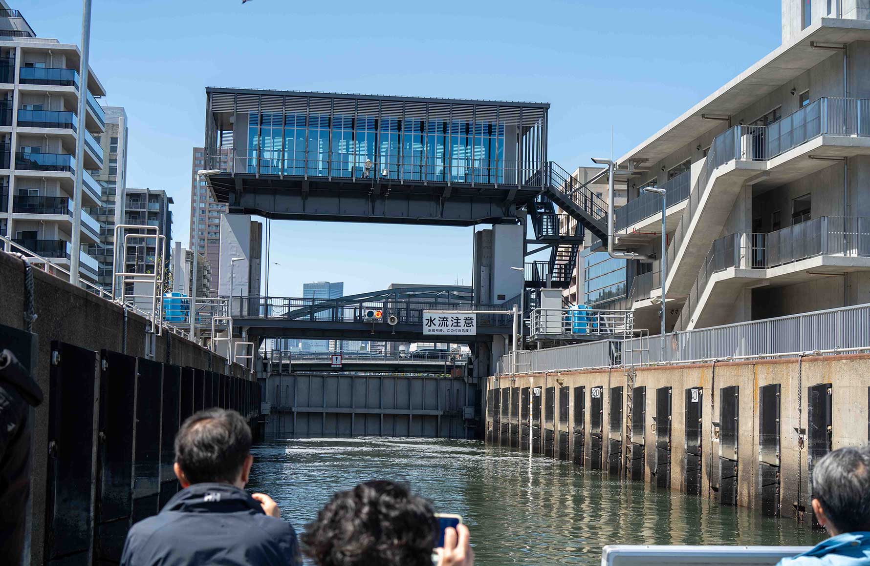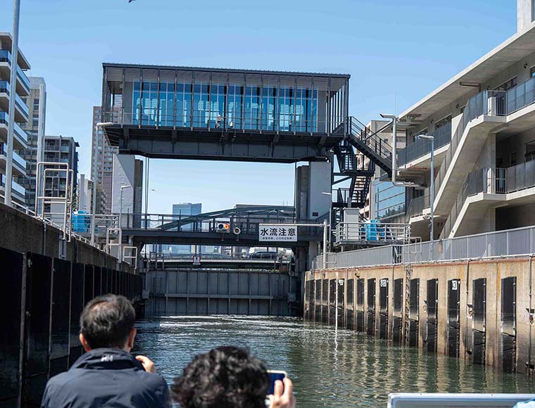 日本橋を出発し、日本橋川・隅田川を経て小名木川へと進むクルーズ。見どころは、船が水位の変化によって上下する扇橋閘門での体験です。まるで水上のエレベーターのように船が持ち上がるダイナミックな瞬間は、都内ではなかなか味わえない貴重な体験。