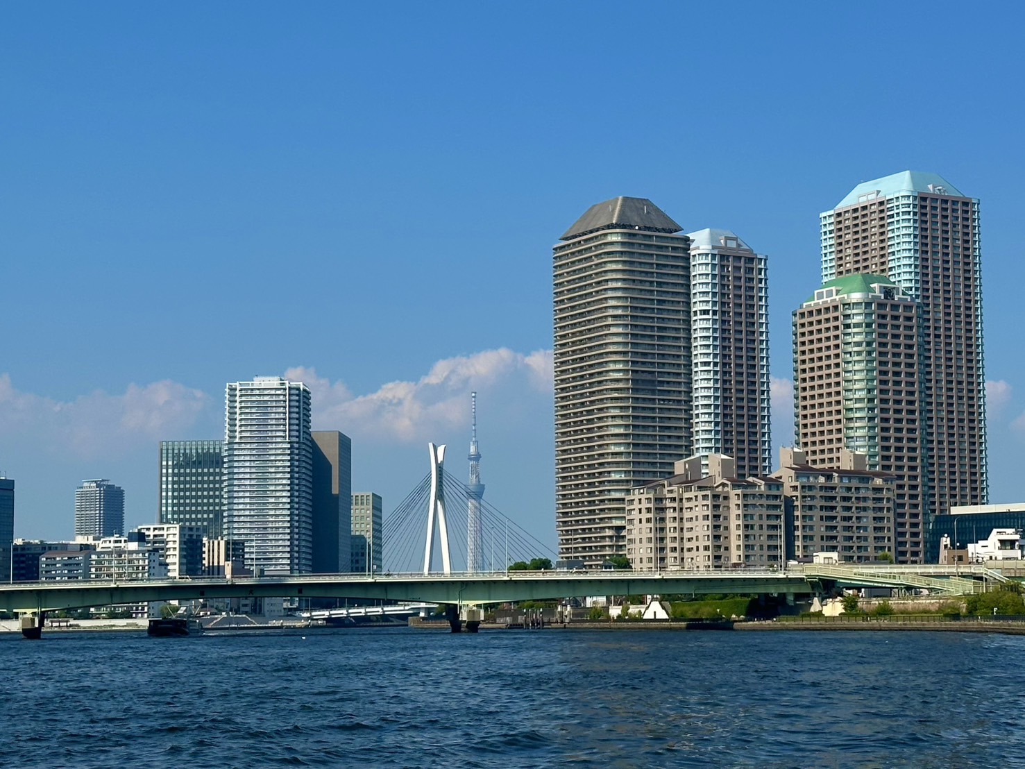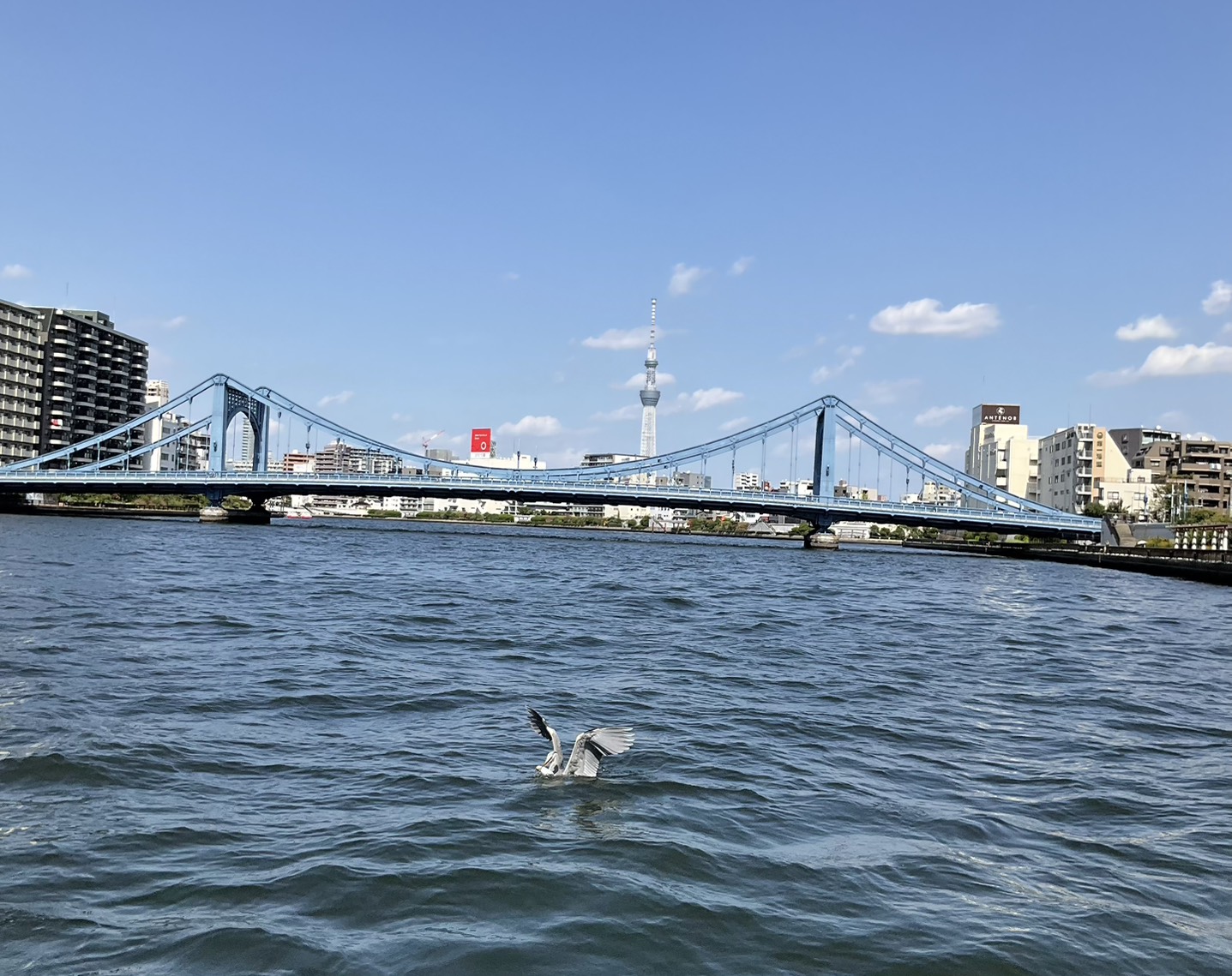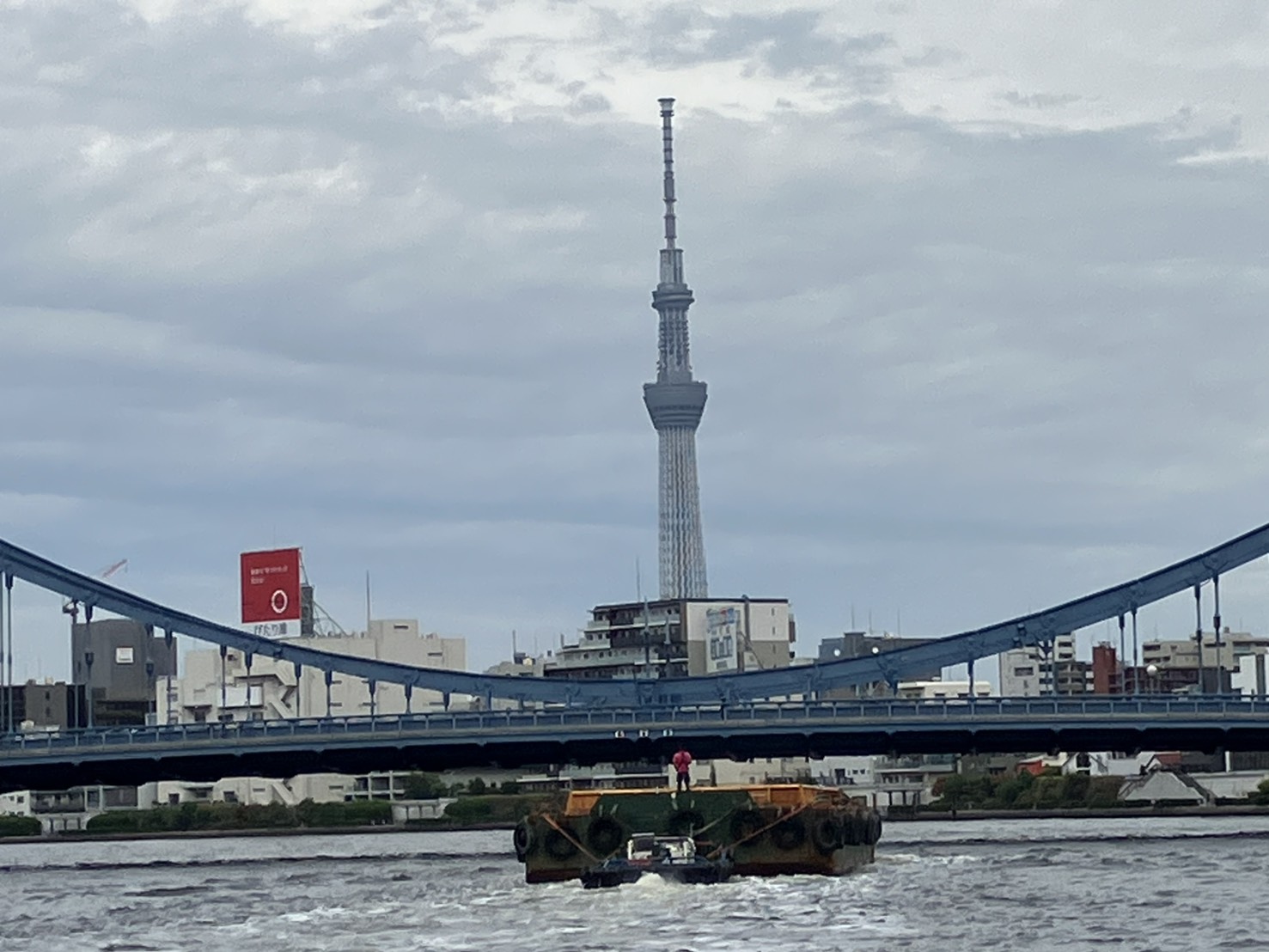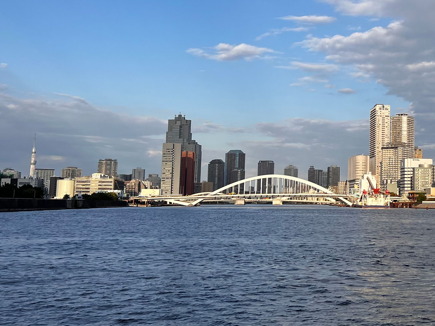 佃大橋が東京オリンピック開催に向けて建設され、さらに今では超高層マンションやスカイツリーが建てられて、隅田川は変わらないのに周りの風景画はどんどん変わって行ってるんだなと感じました。
