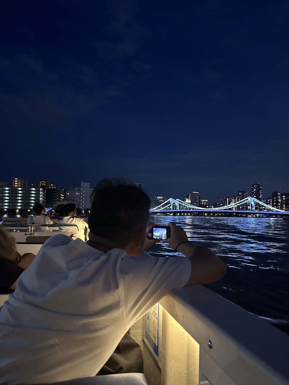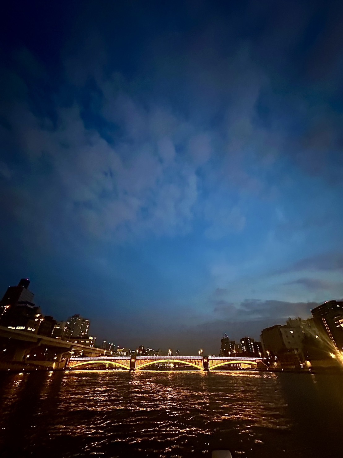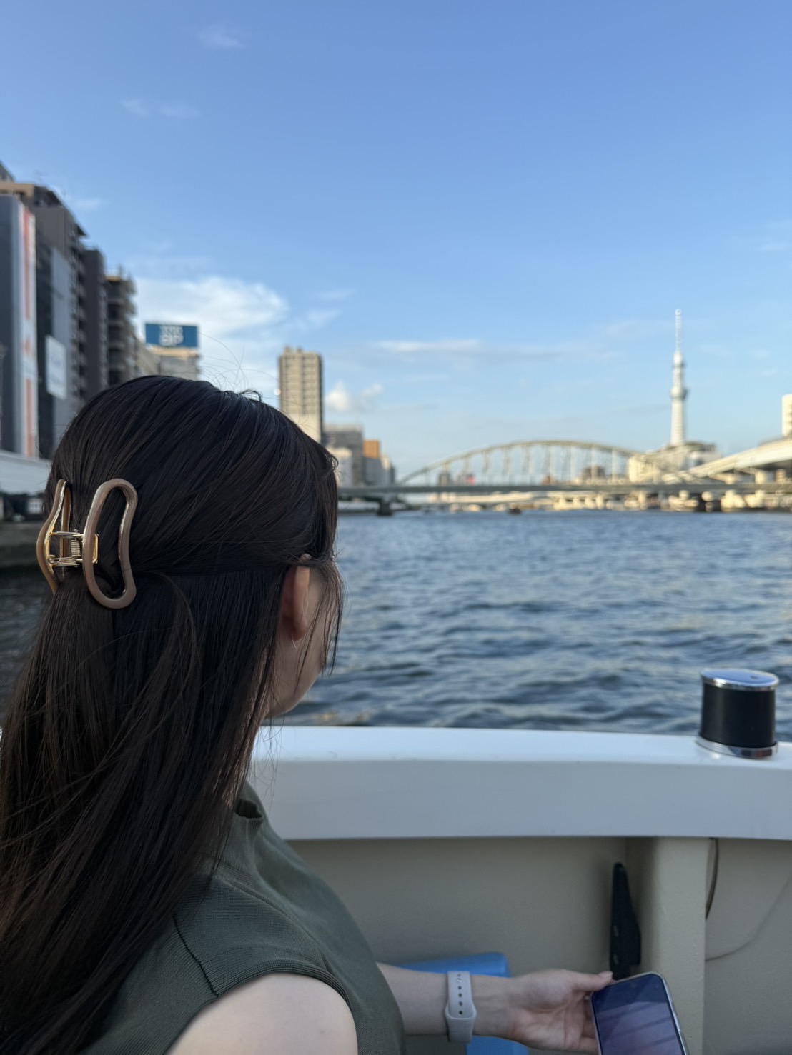 揺れる水面、ぼやけたスカイツリー、そして愛しの彼女の後ろ姿。神田川クルーズで1番美しく愛おしい一瞬を切り取った、この写真が私の心の風景です。